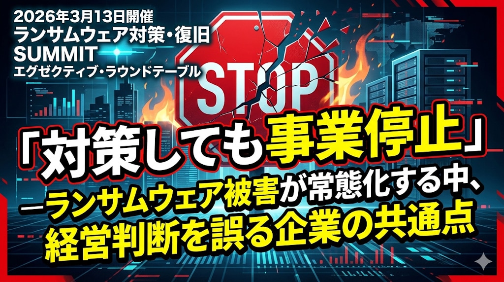 「対策しても事業停止」─ランサムウェア被害が常態化する中、経営判断を誤る企業の共通点お知らせセキュリティ(サイバー攻撃・ゼロトラスト)ブログラウンドテーブルランサムウェア対策2026-04-20原島 望お知らせ